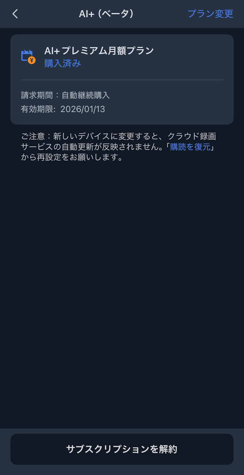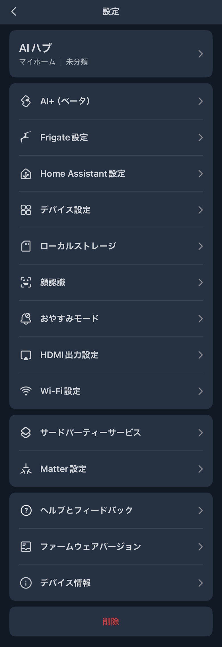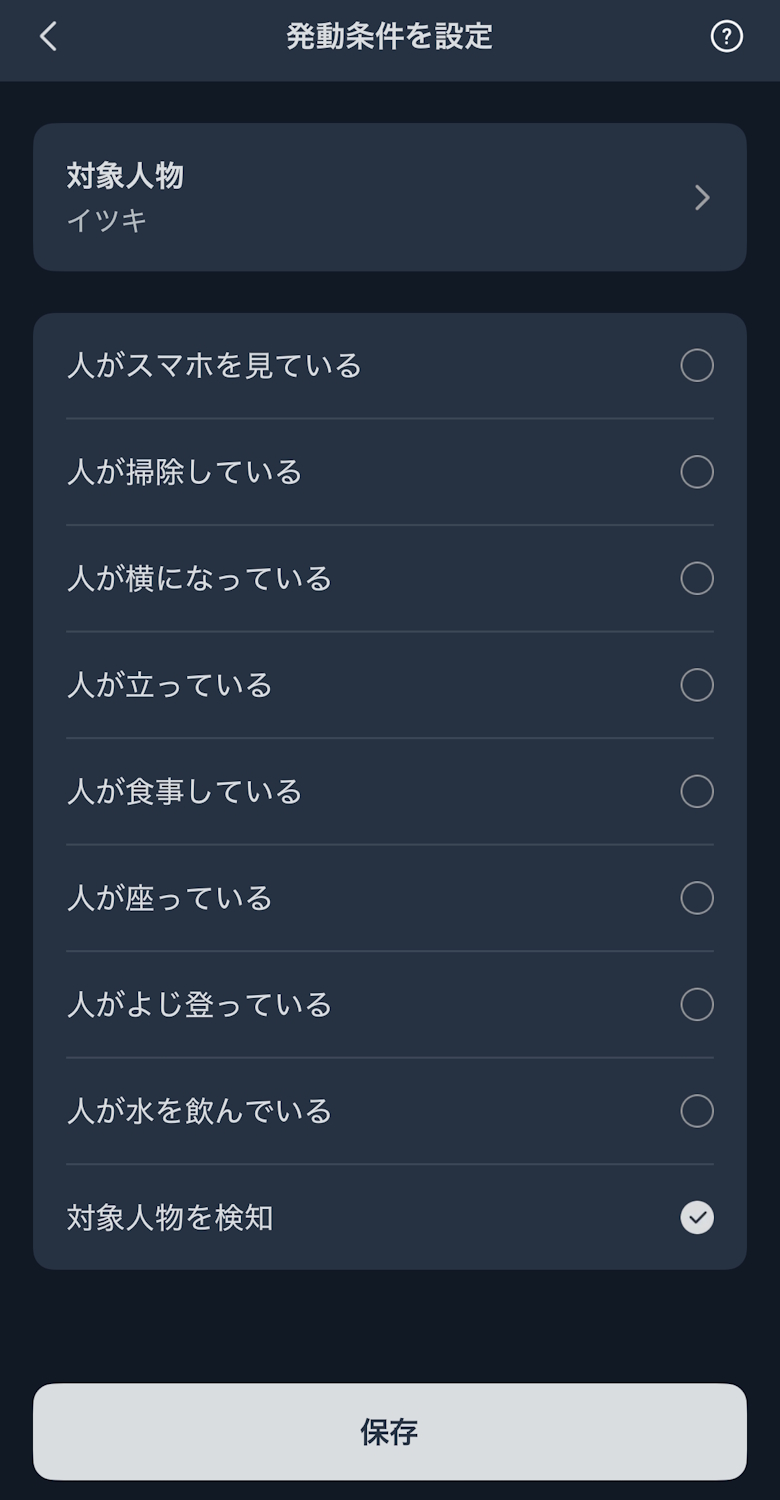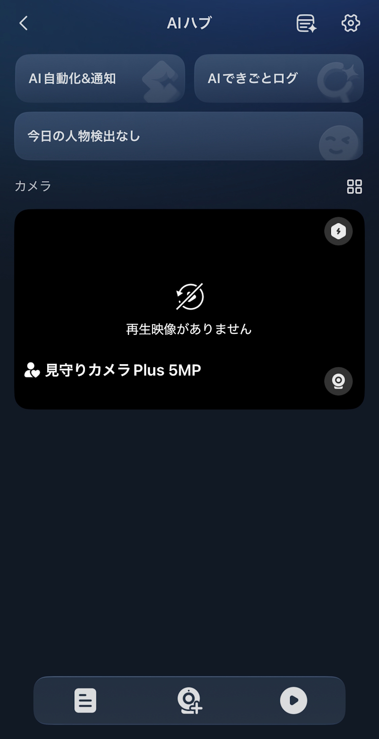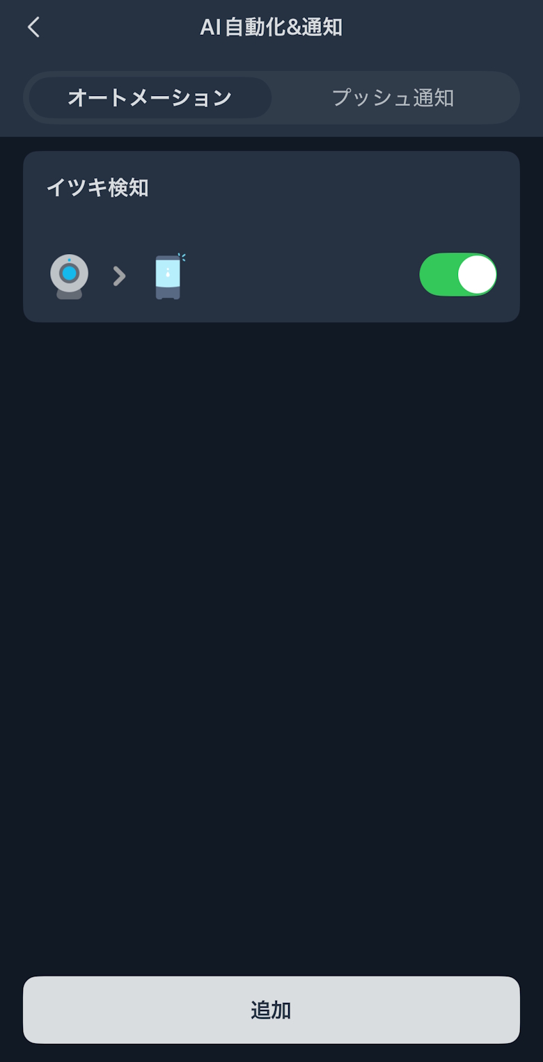 見守りカメラの連携が完了すると、AI自動化や通知、できごとログを確認できます。