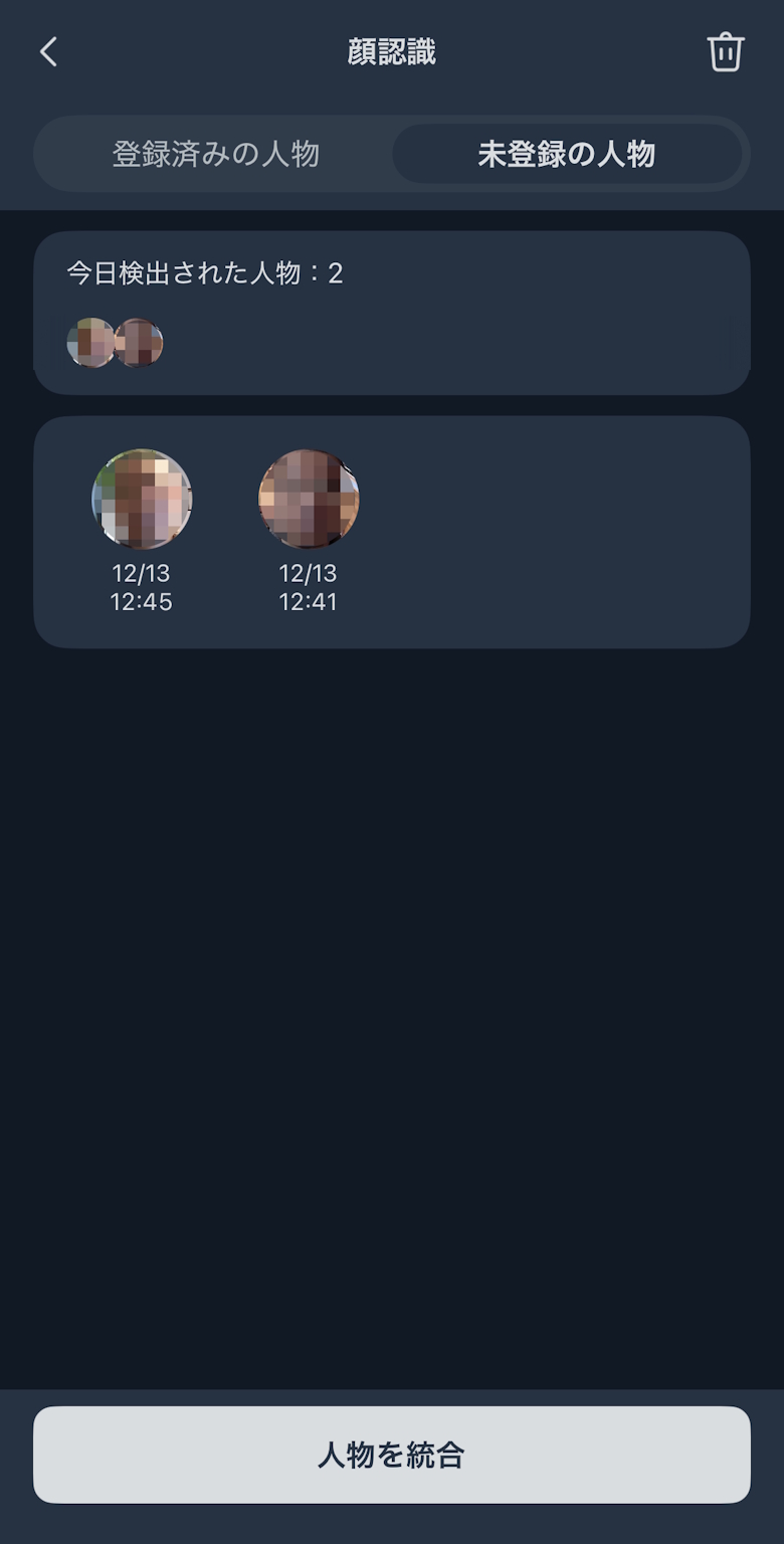カメラに映った人を自動で顔認識し、登録できます。