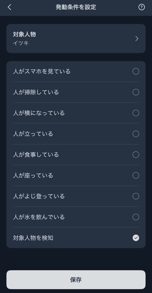 発動条件は対象人物を設定し、どんなアクションをしたかで設定できます。