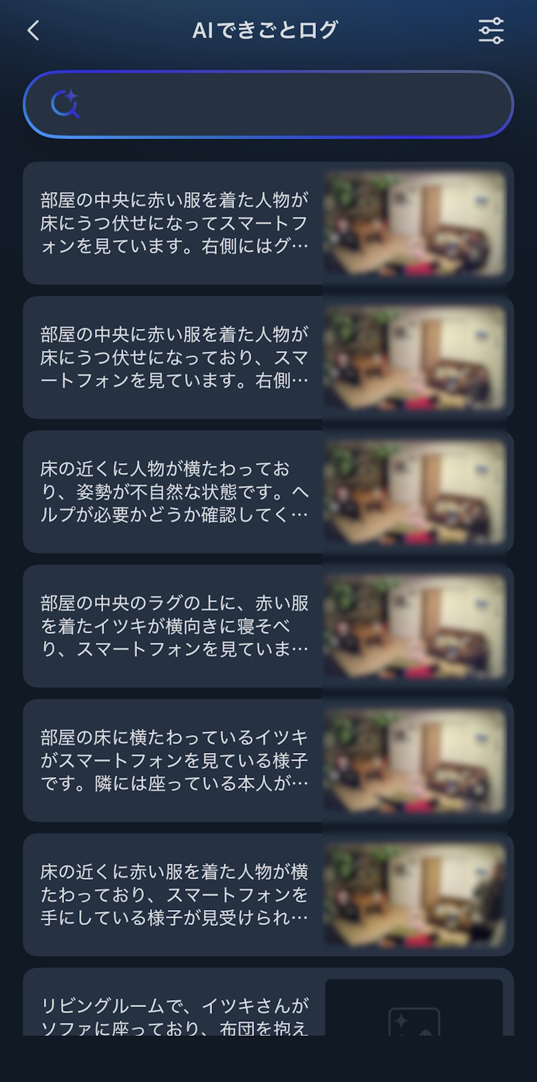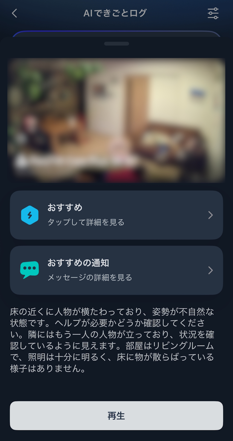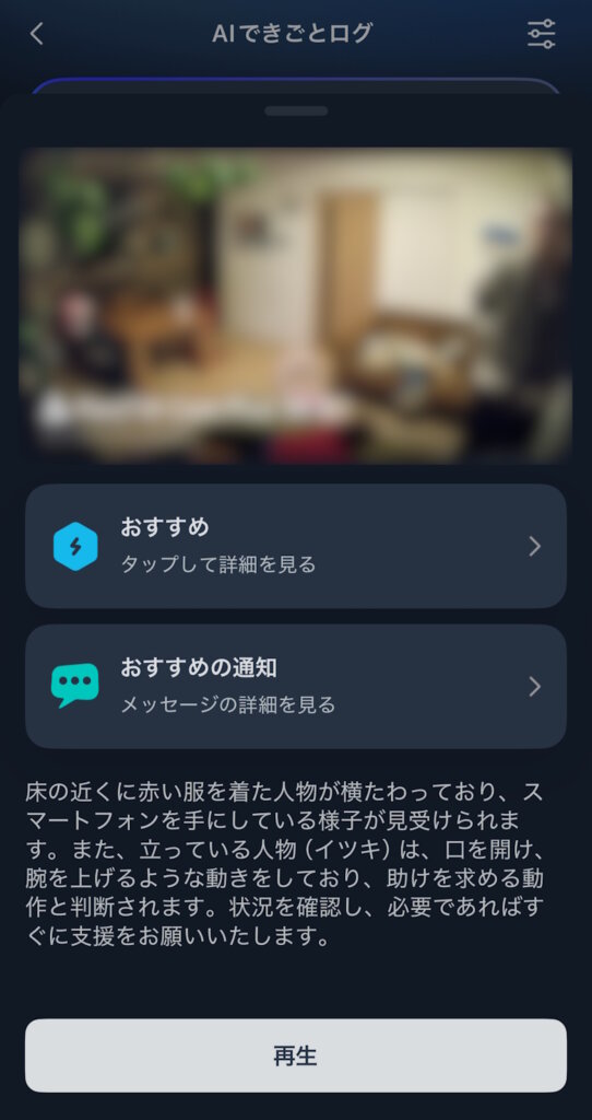 AIできごとログではカメラに映った状況を文章化してくれます。
