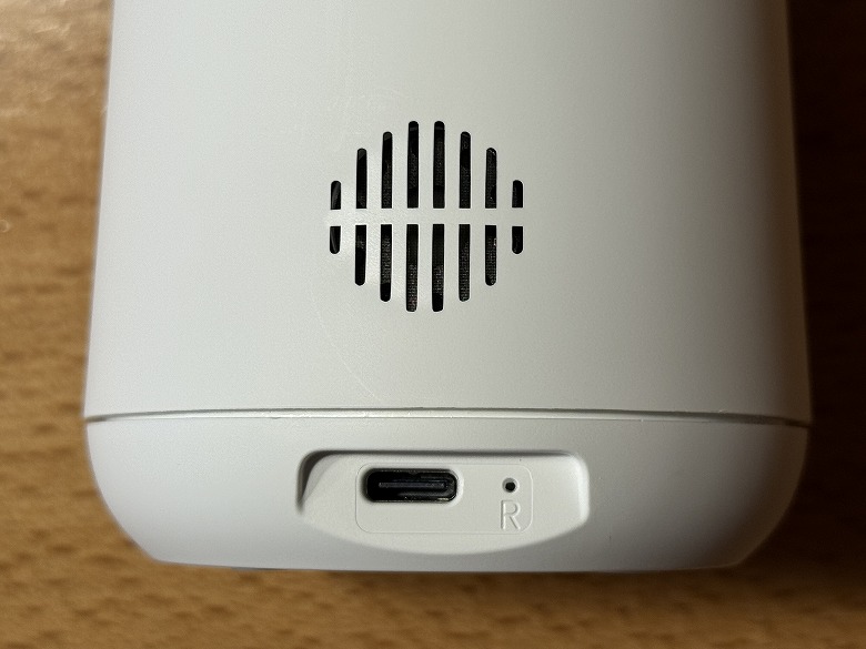 下部にはスピーカーと電源用のUSB Type-Cポート、その横にリセットボタンがあります。