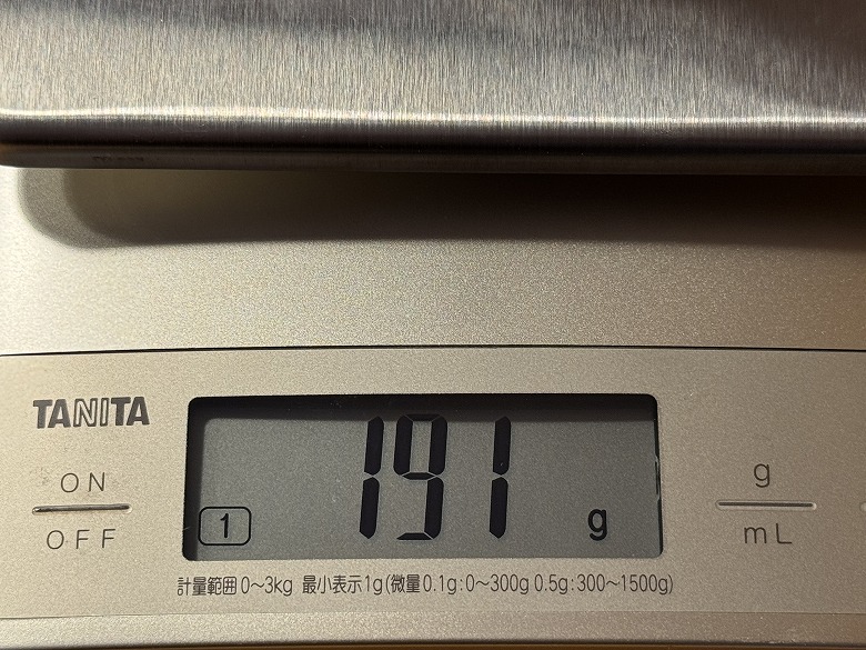 重さは191 gでした。