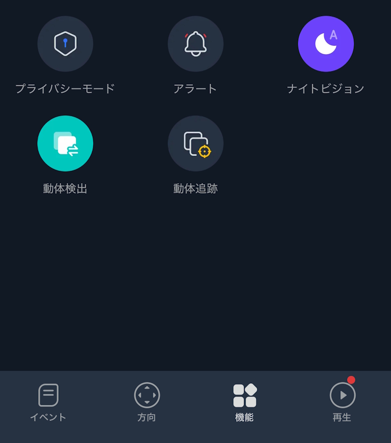機能ではプライバシーモードやアラートなど、さらに細かいメニューが表示されます。