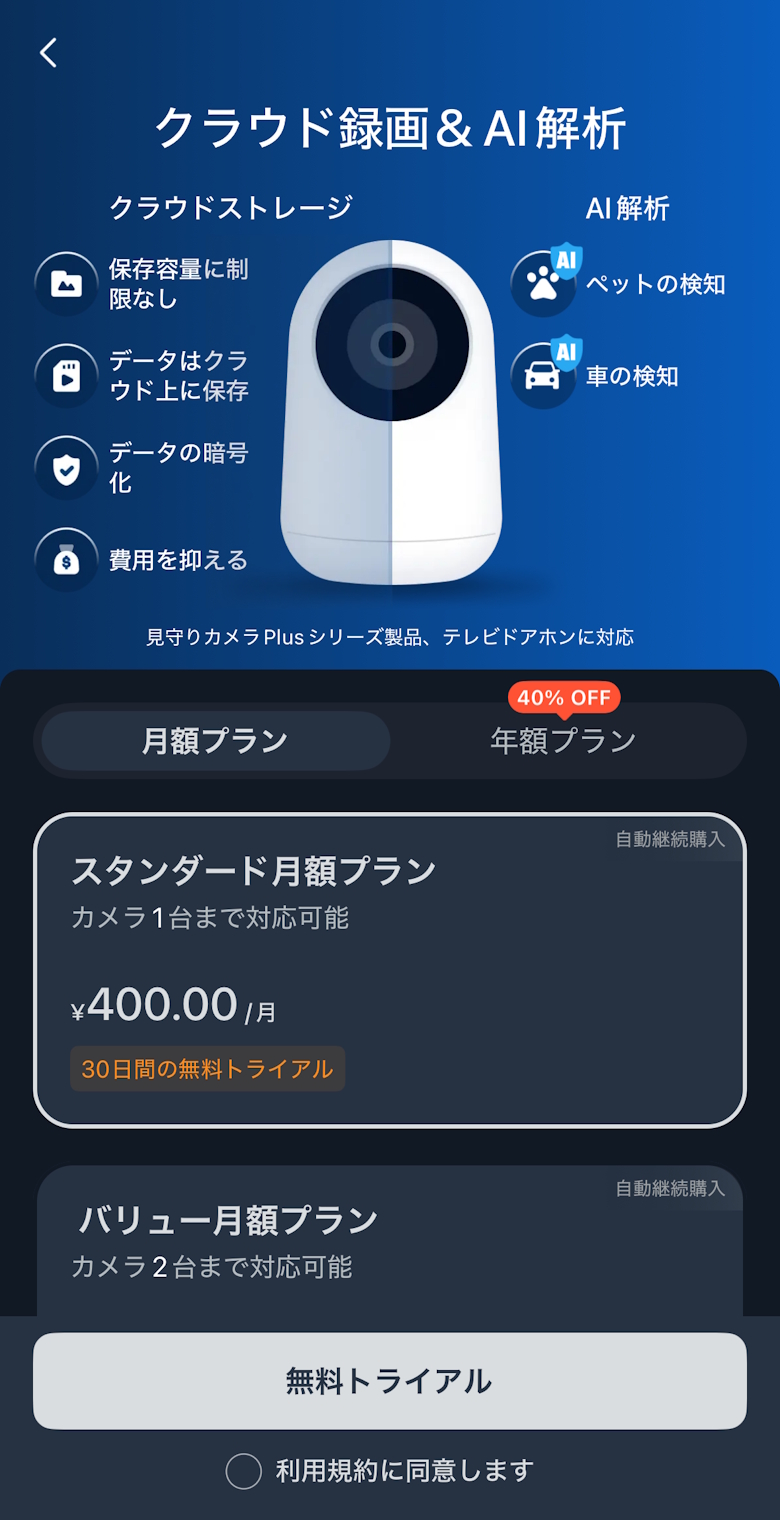 500万画素の高画質に加え、パン・チルト対応で部屋全体をカバーできる点や、人物を識別して追尾する検知機能など、見守り用途だけでなく防犯目的でも使える仕様が特徴です。