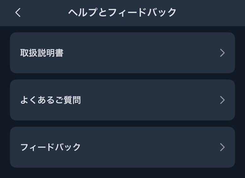 アプリのメニュー