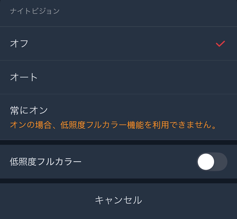 暗くなると自動でナイトビジョンモードになるよう設定でき、映像がより鮮明に見えるようになります。