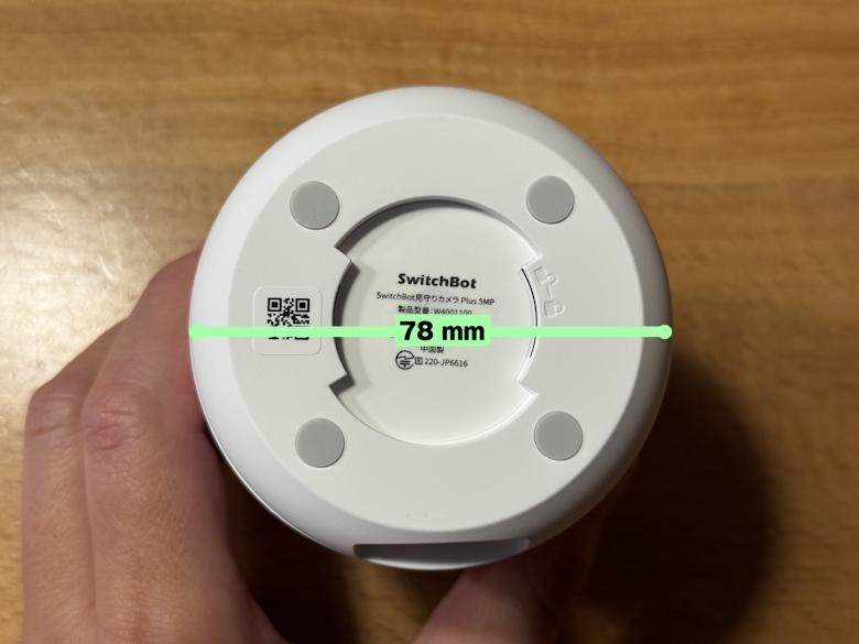 「SwitchBot 見守りカメラ Plus 5MP」の直径は78 mmです。