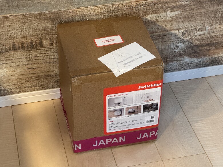 「SwitchBotロボット掃除機 K11+」の外箱は、ダンボール素材でシンプルなデザインです。