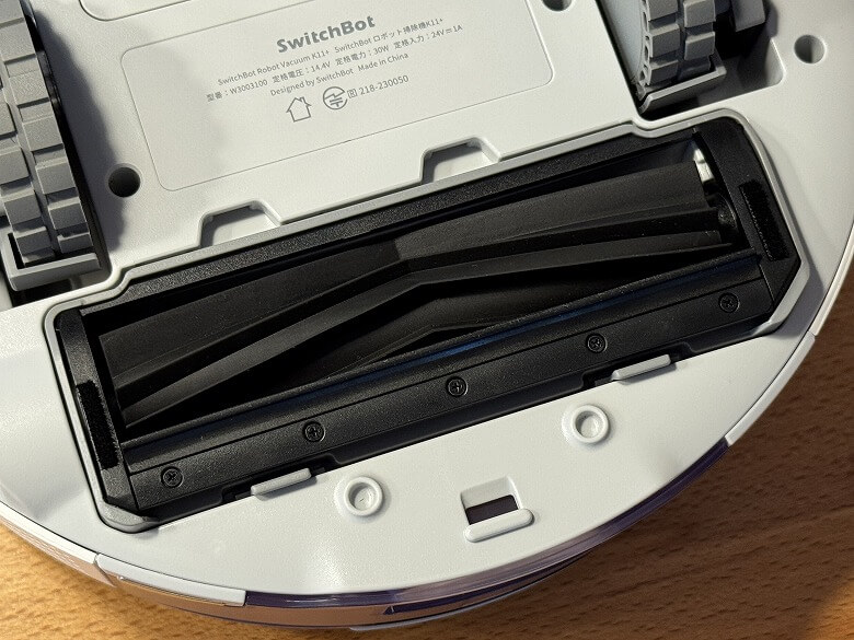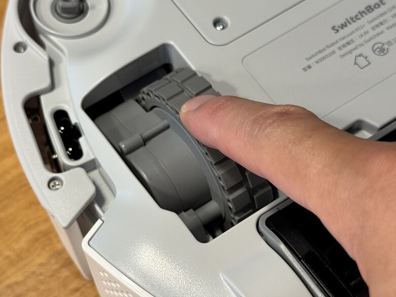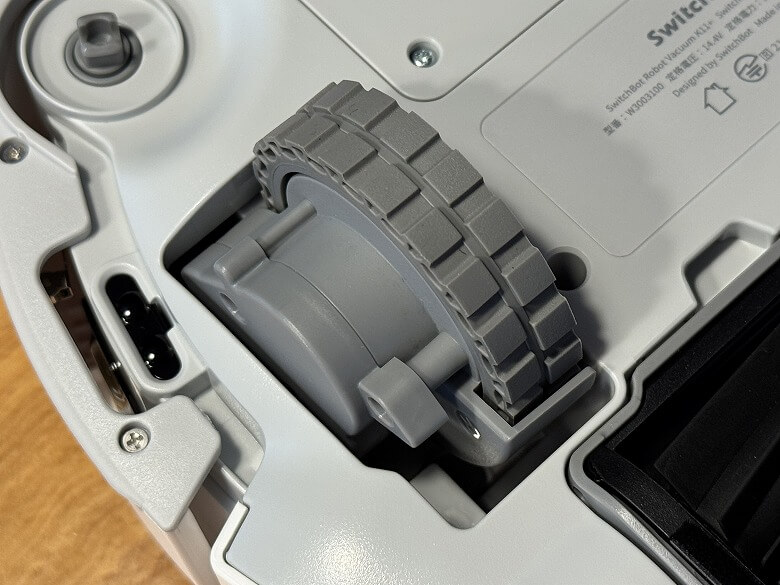 主輪は底面を下にして置くとロボット掃除機本体の中に沈みます。