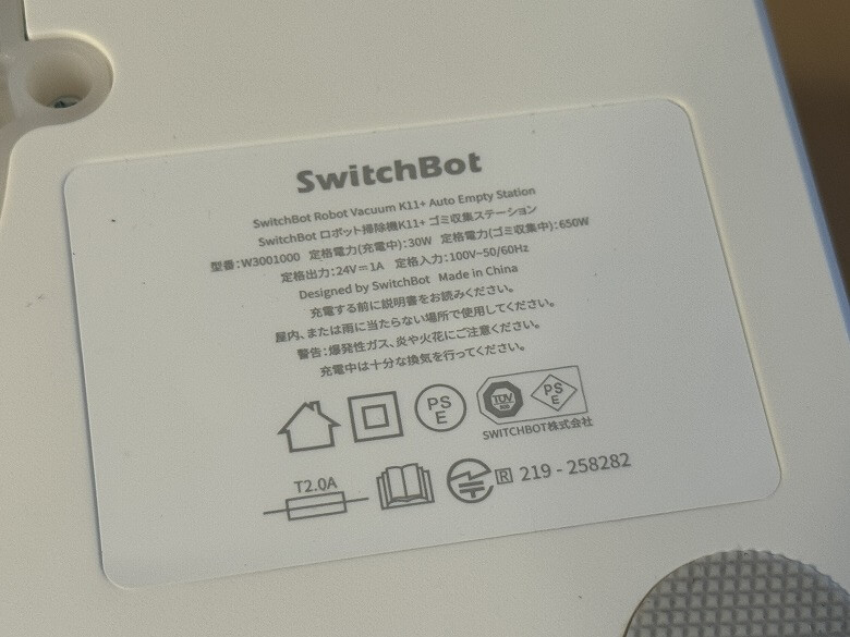 底面のラベルにはゴミ収集ベースの仕様が記載されています。