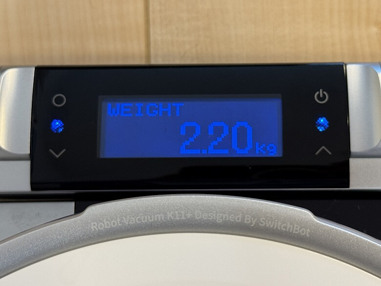 重さはそれぞれロボット掃除機が約2.20 kg、充電ベースが約2.30 kgでした。