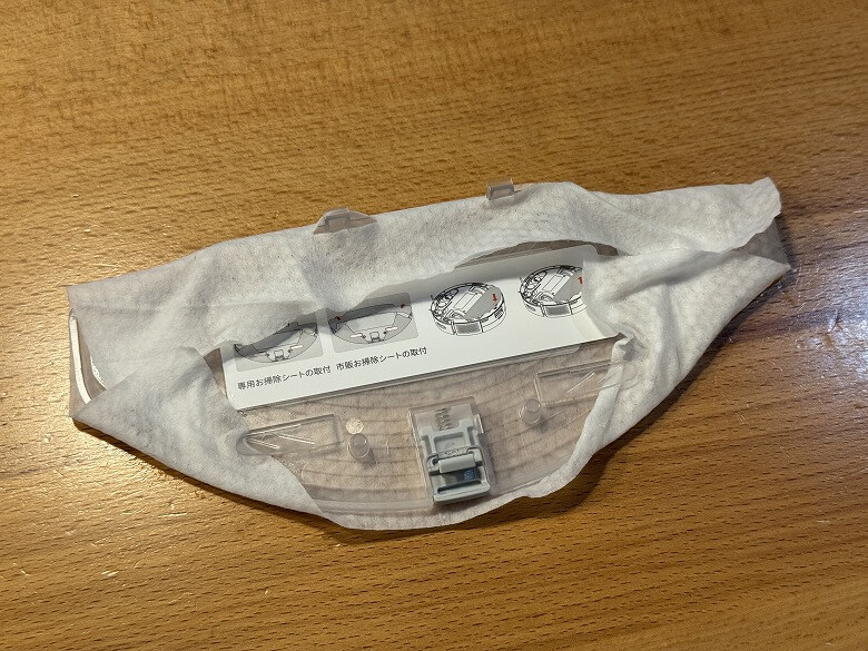 専用お掃除シートはモップ取付パッドに取り付けて使います。