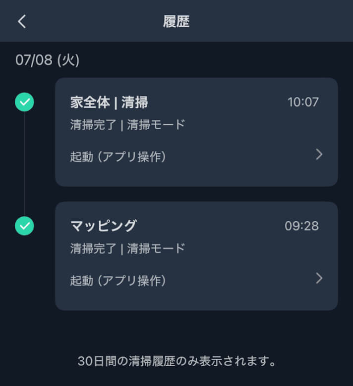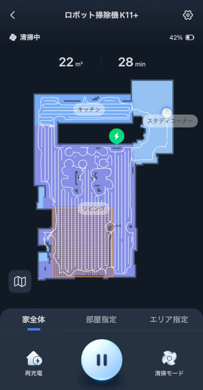 掃除中はロボット掃除機の掃除履歴をリアルタイムに見ることができます。