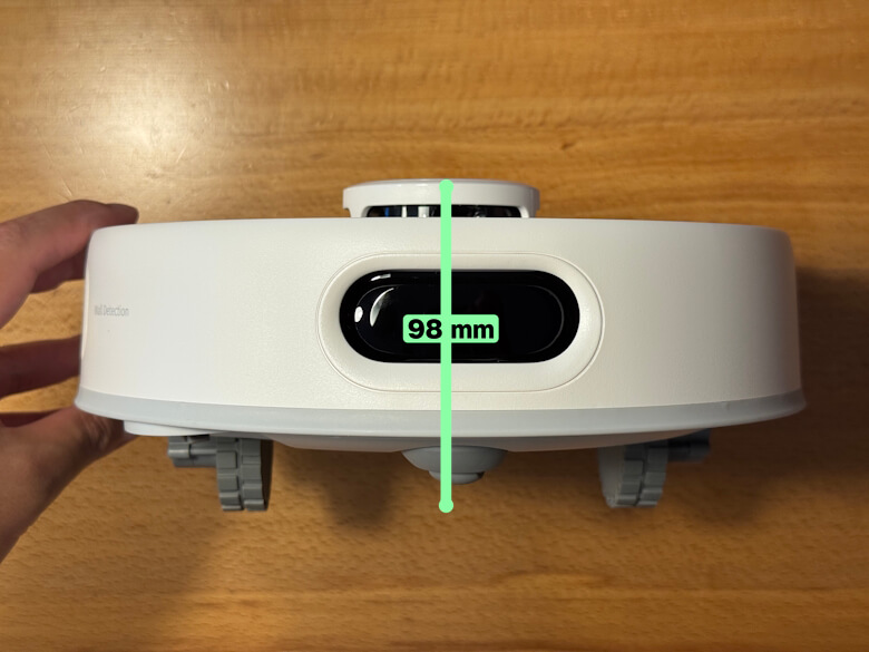 高さ(床からレーザーセンサーの上部まで)は98 mm。