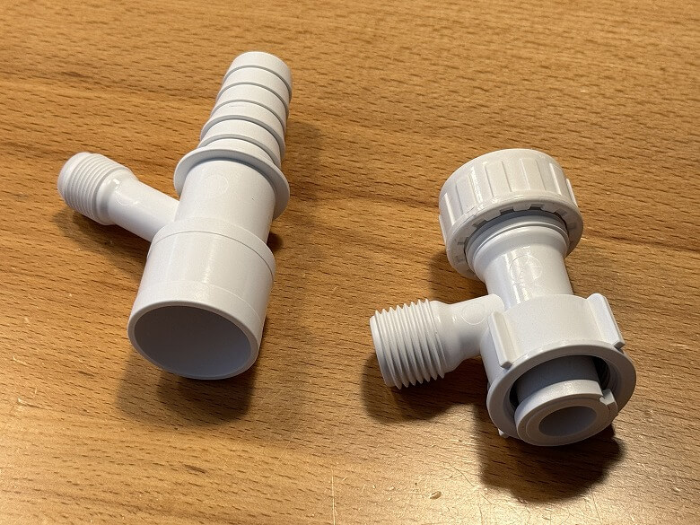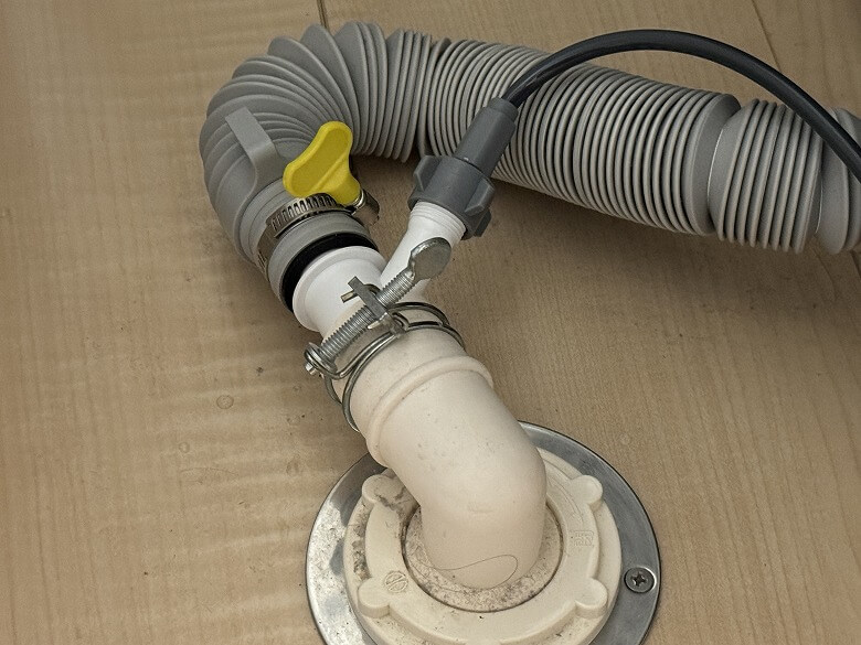 洗濯機周りの水道栓や排水口に接続して、水交換ステーションを設置します。