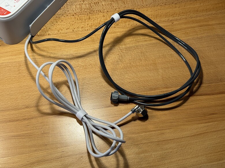 背面からは給水・排水ホースが伸びており、先端には各種部品に接続する端子があります。
