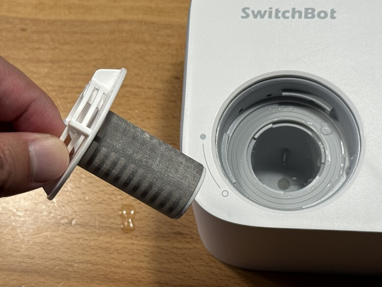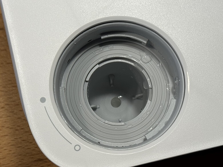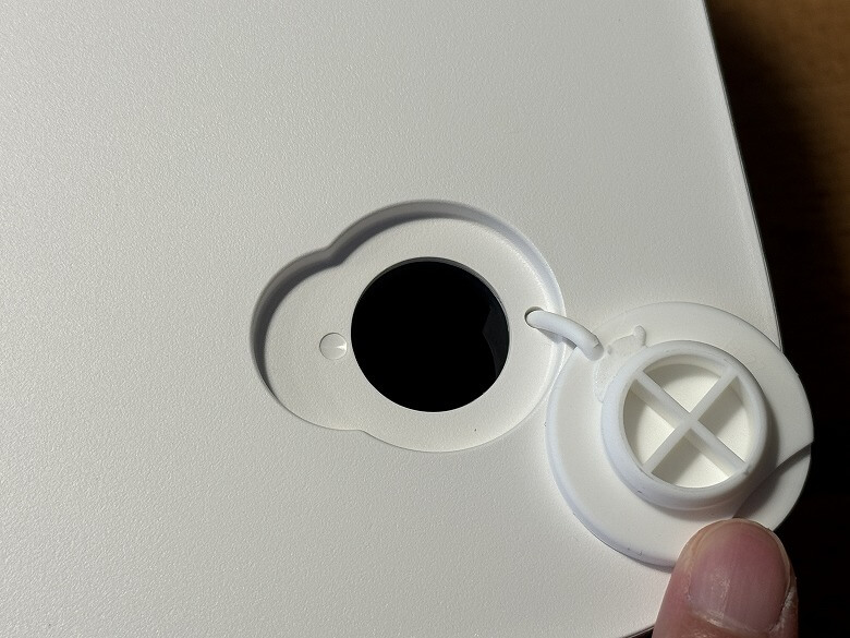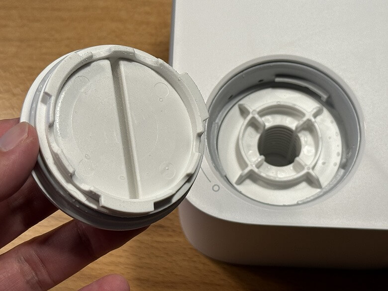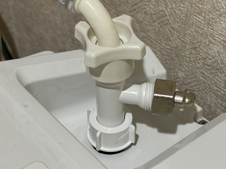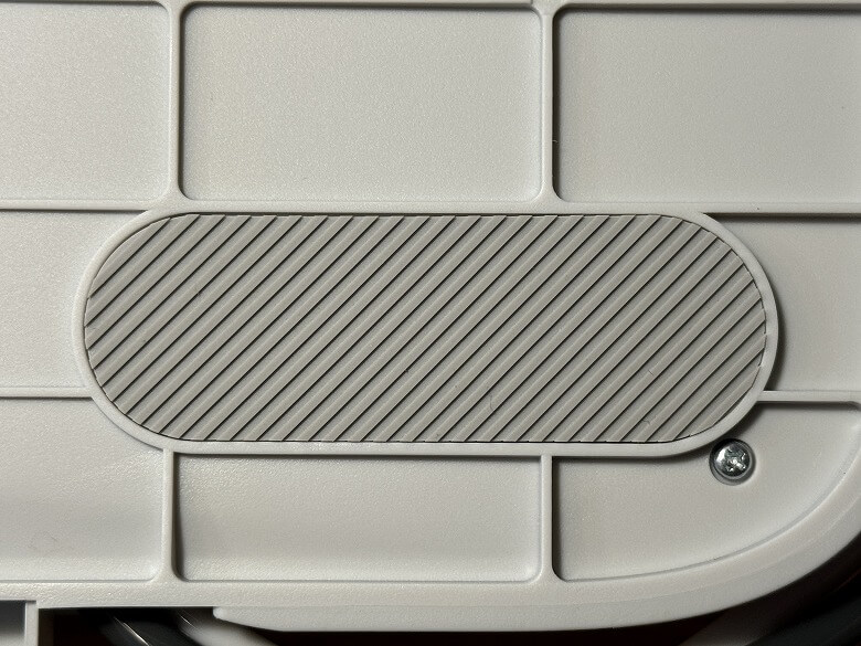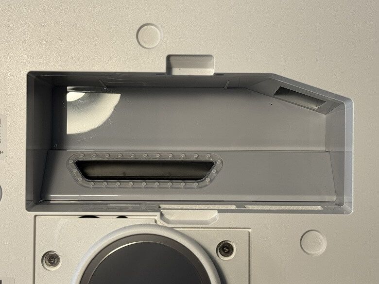 手前側左にはキャップがあり、中の汚水フィルターを取り外してメンテナンスできます。
