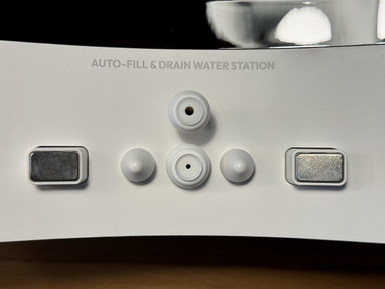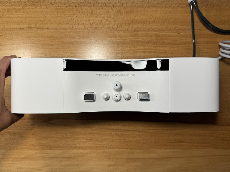 正面には接続部や自動給水口があります。