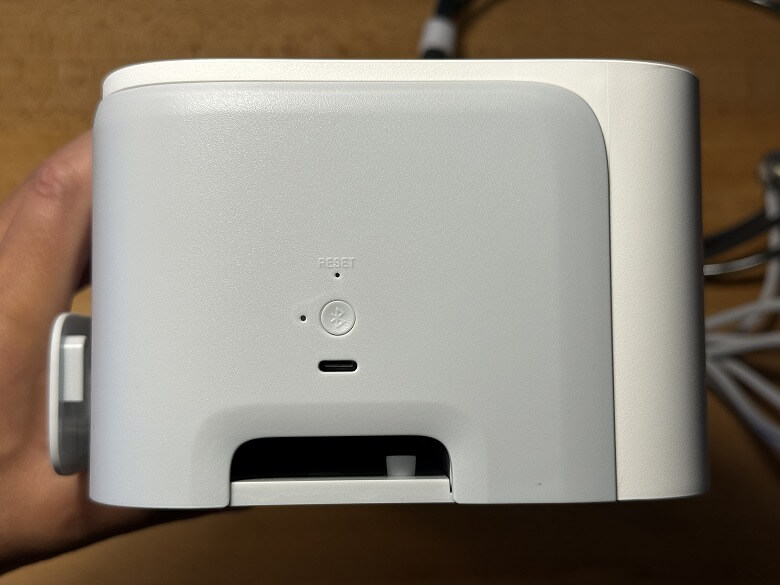 正面下部には充電接点と吸引口があります。