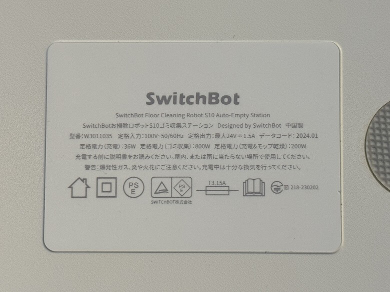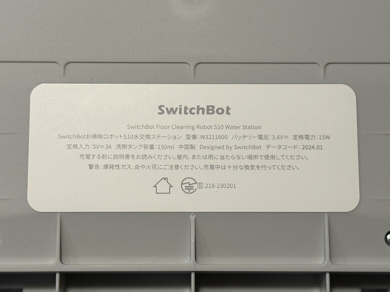 底面のラベルにはゴミ収集ベースの仕様が記載されています。