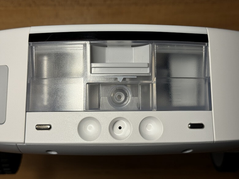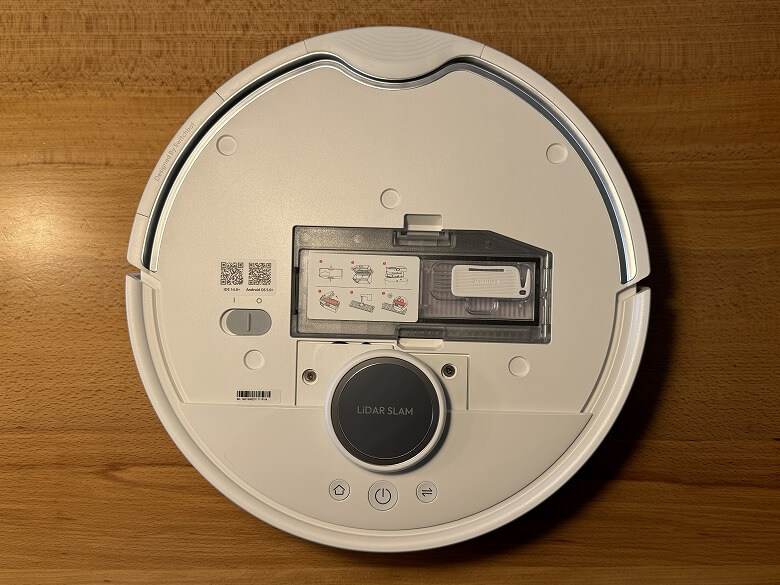 LDSレーダーセンサーの下には充電ボタン、清掃ボタン、モード切替ボタンがあります。