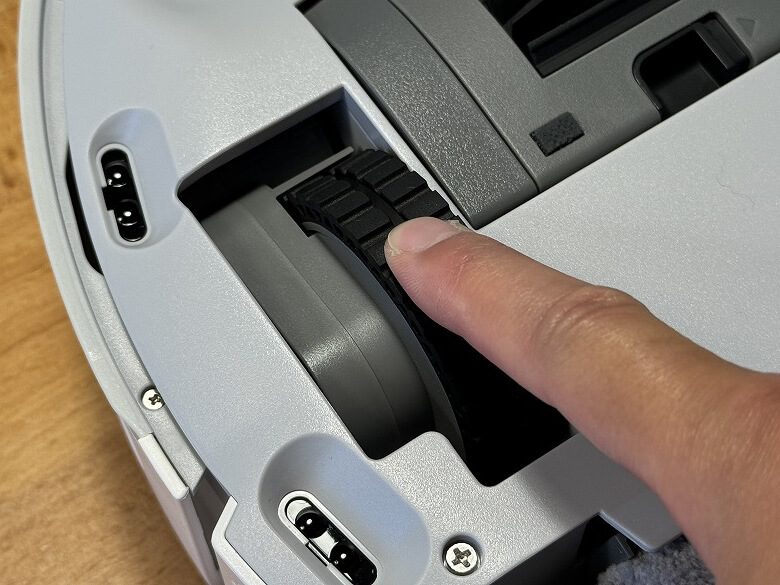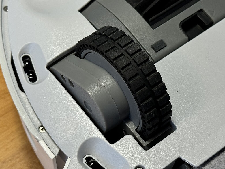 主輪は底面を下にして置くとロボット掃除機本体の中に沈みます。
