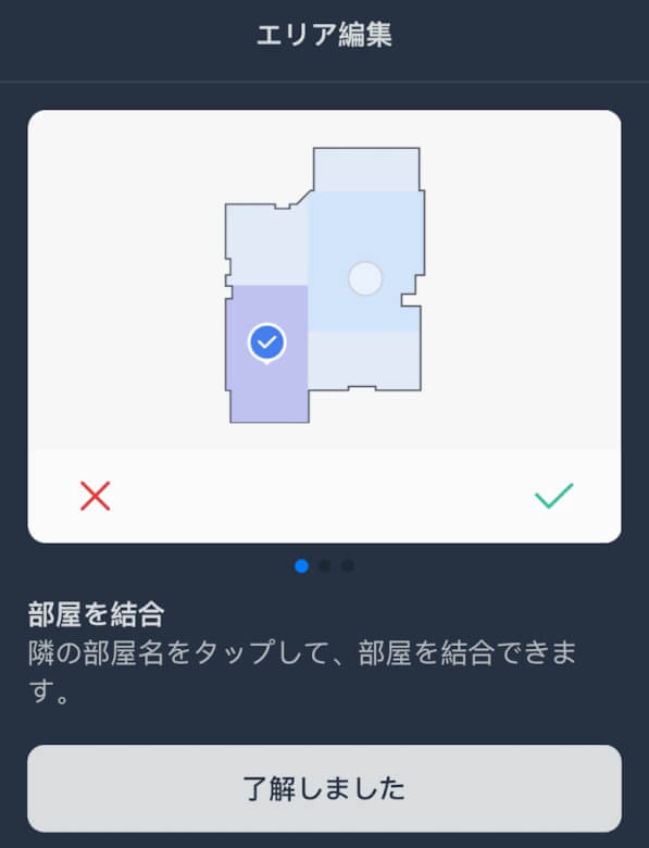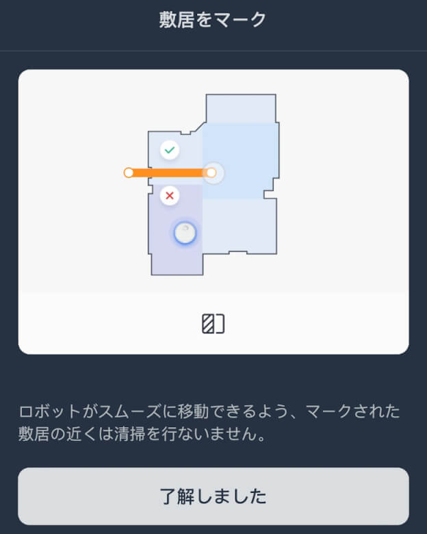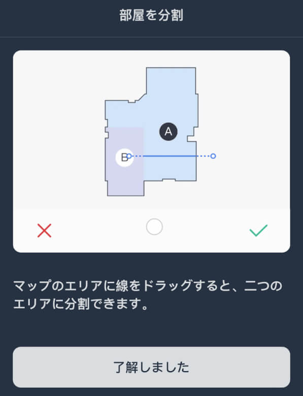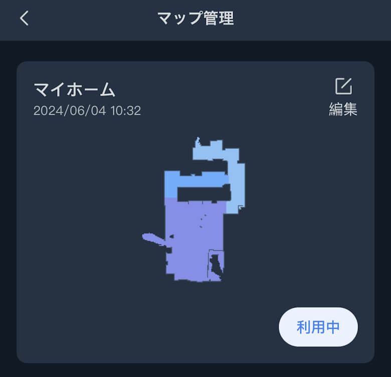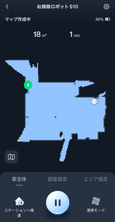 マップ作成が完了すると画面に掃除範囲のマップが表示されます。