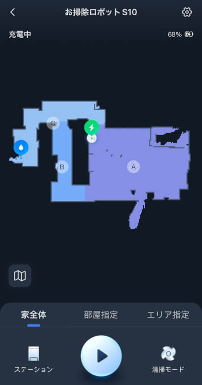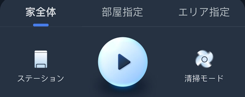 清掃方法は「家全体」「部屋指定」「エリア指定」から選択できます。