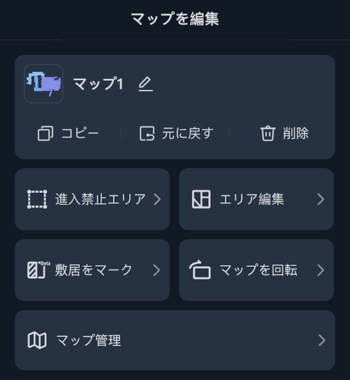 マップ管理では登録されているマップを確認・編集できます。