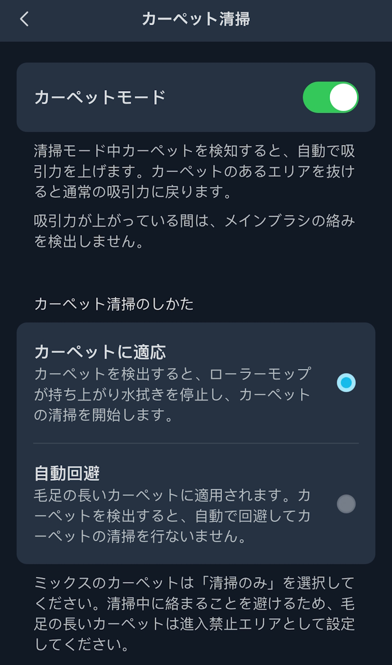 カーペット清掃ではカーペット清掃の方法を設定できます。