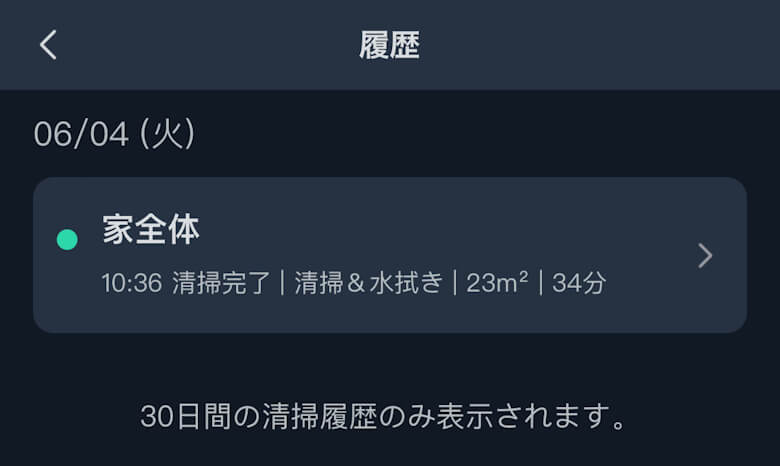 わが家の場合、リビングダイニング約23㎡が約34分で掃除完了しました。