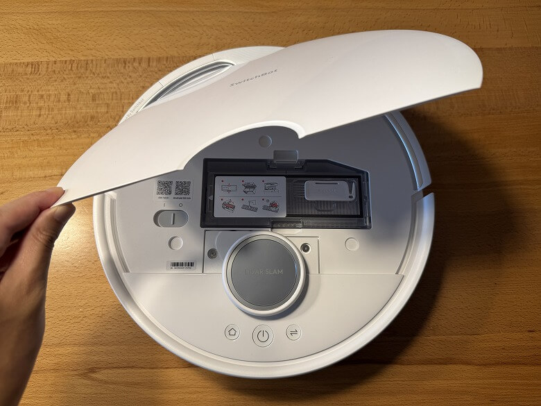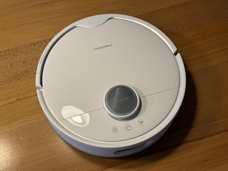 「SwitchBot お掃除ロボットS20」の外観は、白で統一されたシンプルなデザインです。