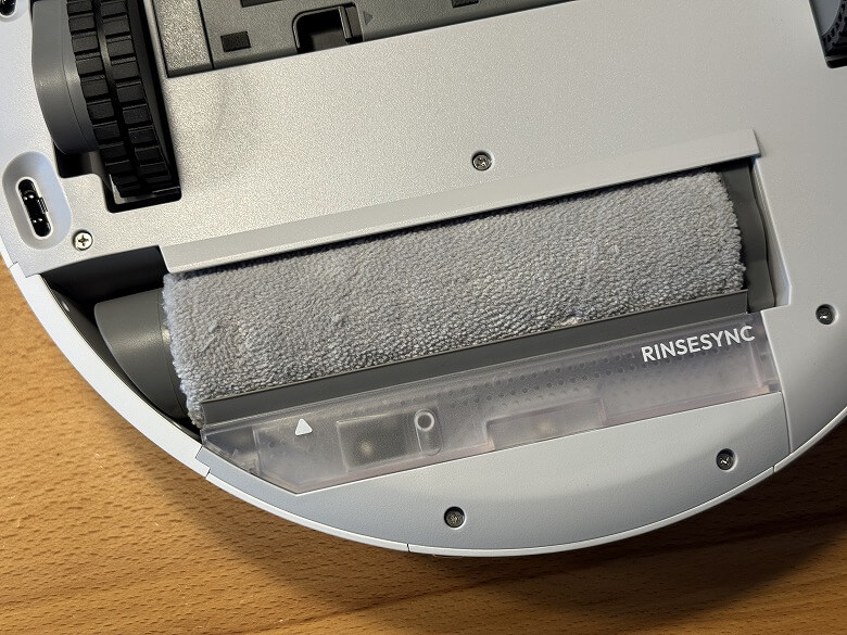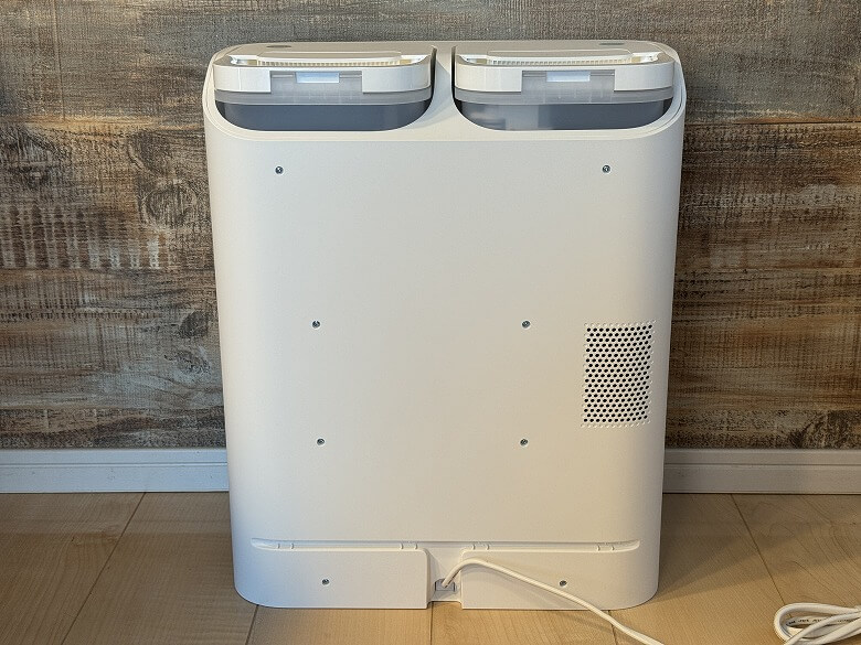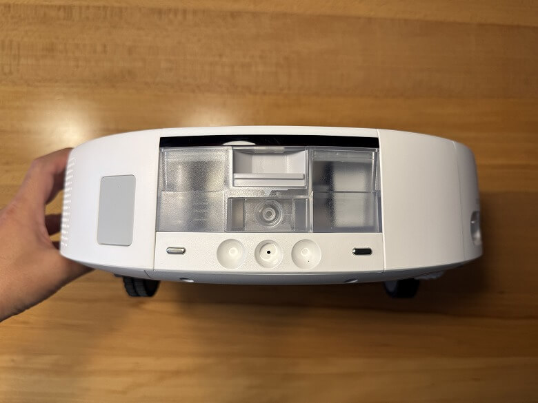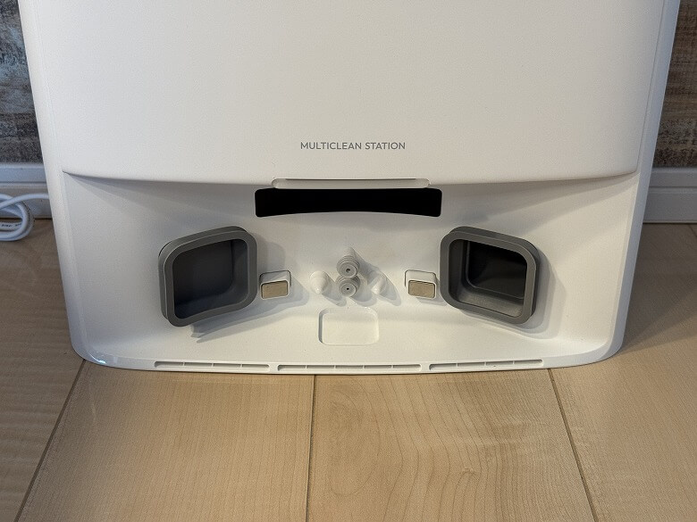 背面には充電端子や汚水ボックス、ゴミ収集口があります。