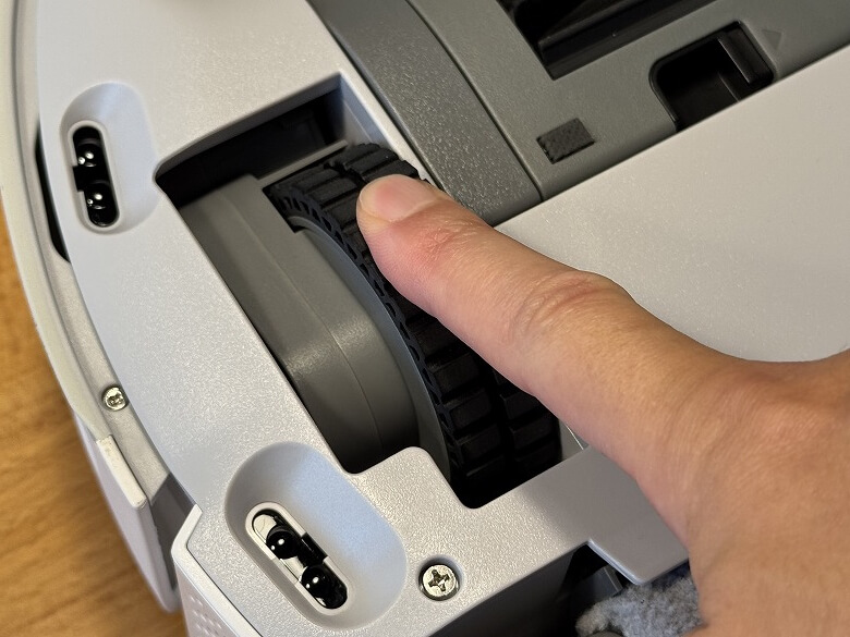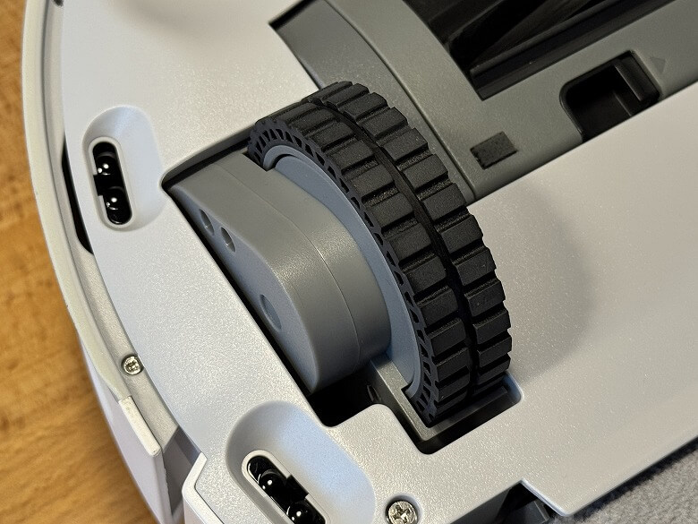 車輪は底面を下にして置くとロボット掃除機本体の中に沈みます。