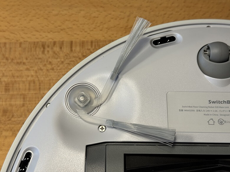 サイドブラシはロボット掃除機の底面前方に装着して使います。