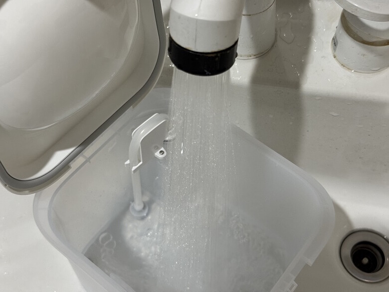 フタを開けて水を入れます。