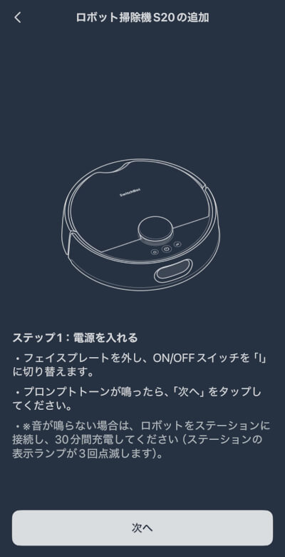 スマホアプリで「SwitchBot お掃除ロボットS20」をセットアップする方法をタップして見る