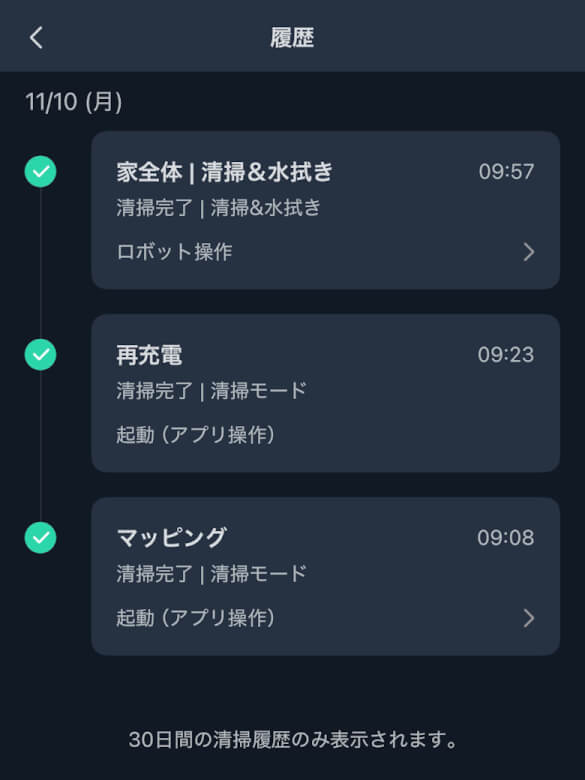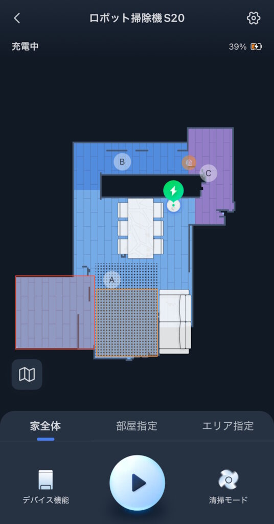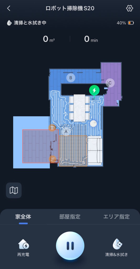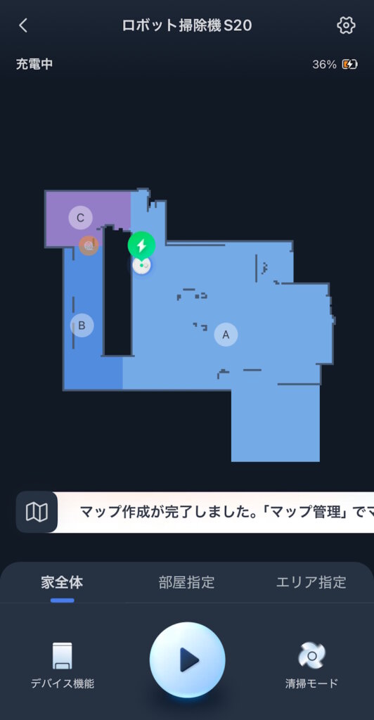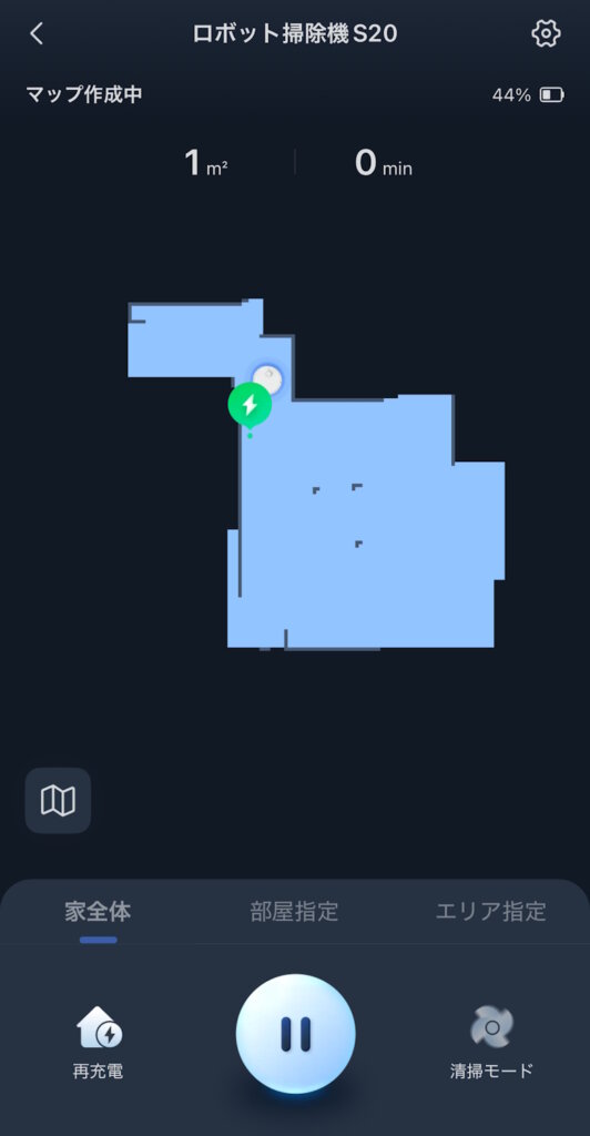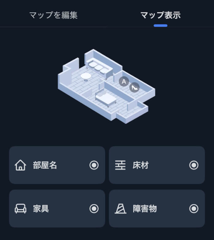 掃除中はマップの中をロボット掃除機のアイコンが動きます。