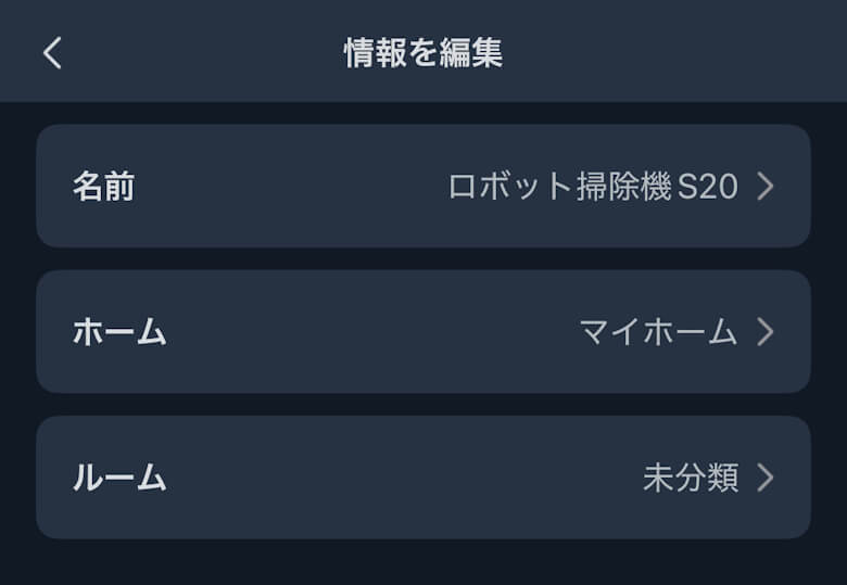 ロボット掃除機の名前などを変更できます。