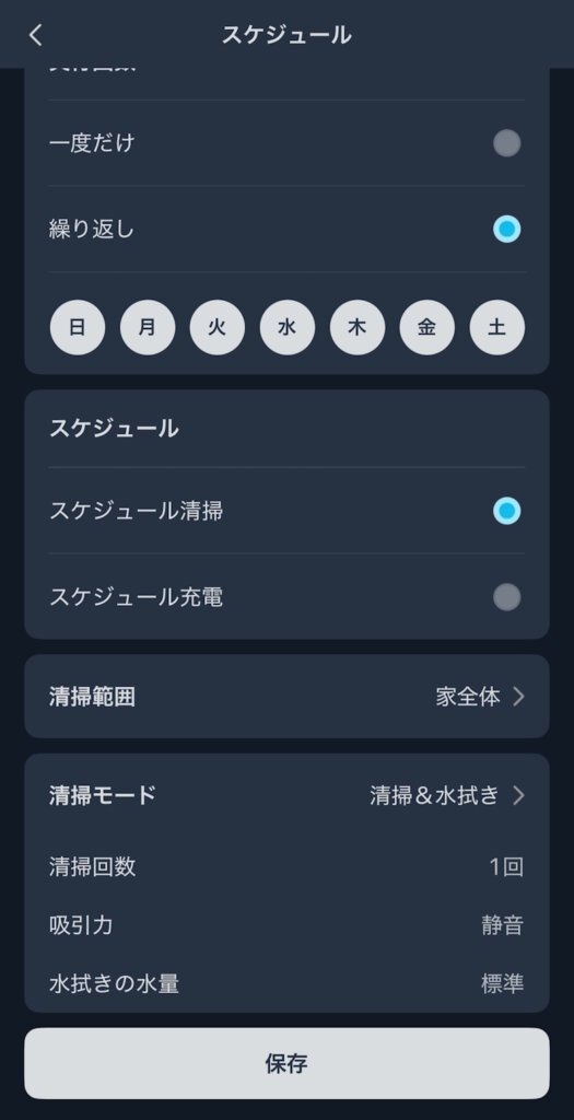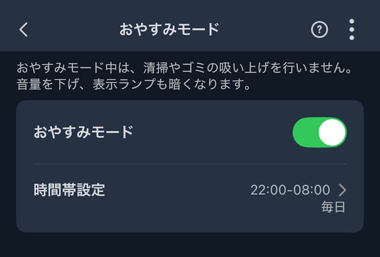 おやすみモードを設定すると静かに掃除してくれます。