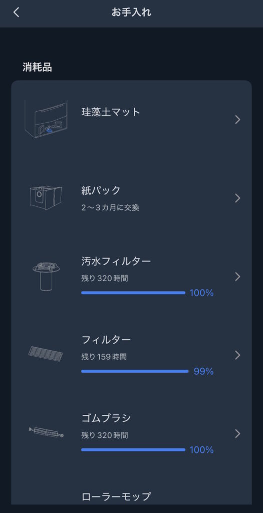 各種消耗品の寿命を可視化できます。