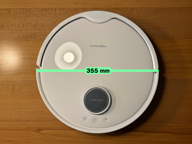 「SwitchBot お掃除ロボットS20」のロボット掃除機のサイズは直径355 mmです。