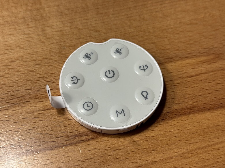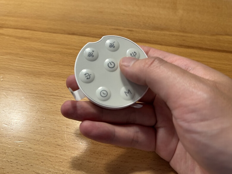 リモコンでは電源ON/OFFや風量調整、首振りなど各種操作を行えます。