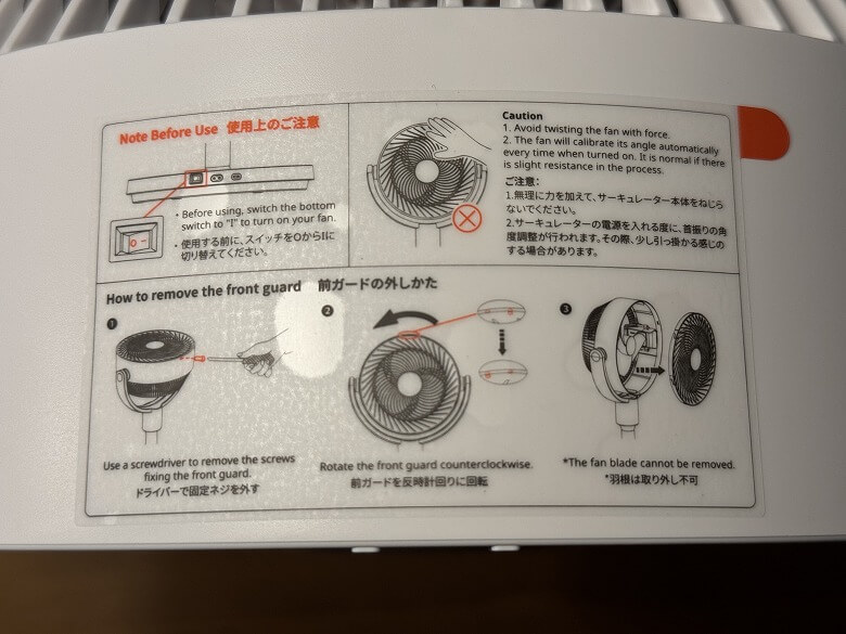 SwitchBot スマートサーキュレーター(スタンド型)の同梱物