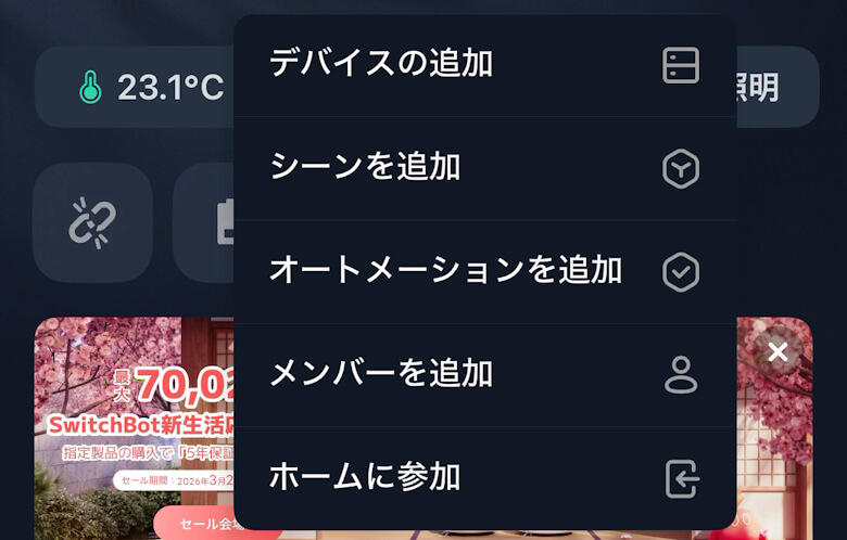 ホーム画面にセットアップした「SwitchBot スマートサーキュレーター(スタンド型)」が表示されたら完了です