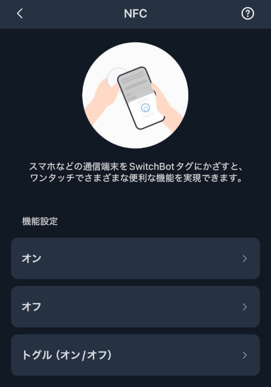 アプリのホーム画面では電源ON/OFFとモードの変更ができます。
