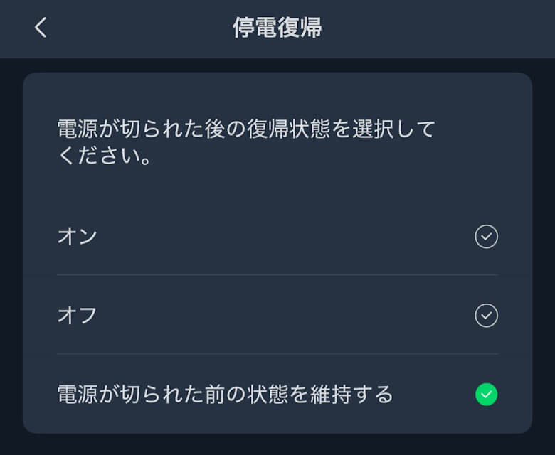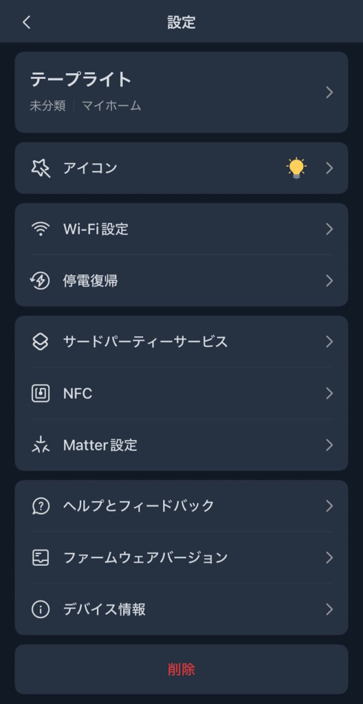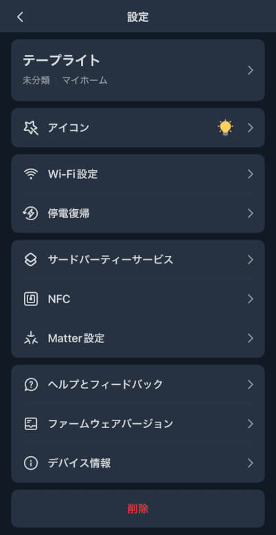 停電復帰やサードパーティサービス、NFCなど細かく設定変更できます。