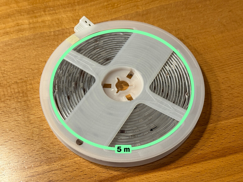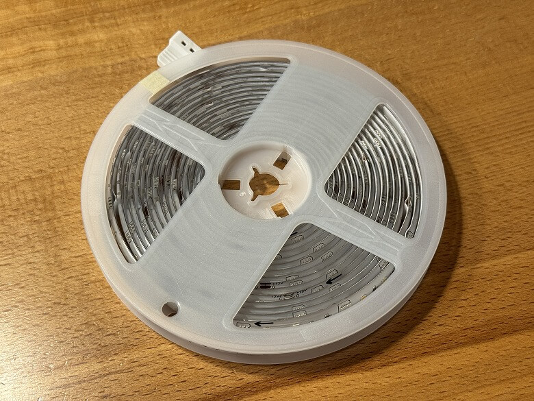 「SwitchBotテープライト3」は全長5 mで、ホイールに巻かれて収納されています。
