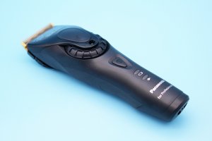 本体上部にはグリップがあり、中央には青色に点灯する表示部と操作ボタンがあります。