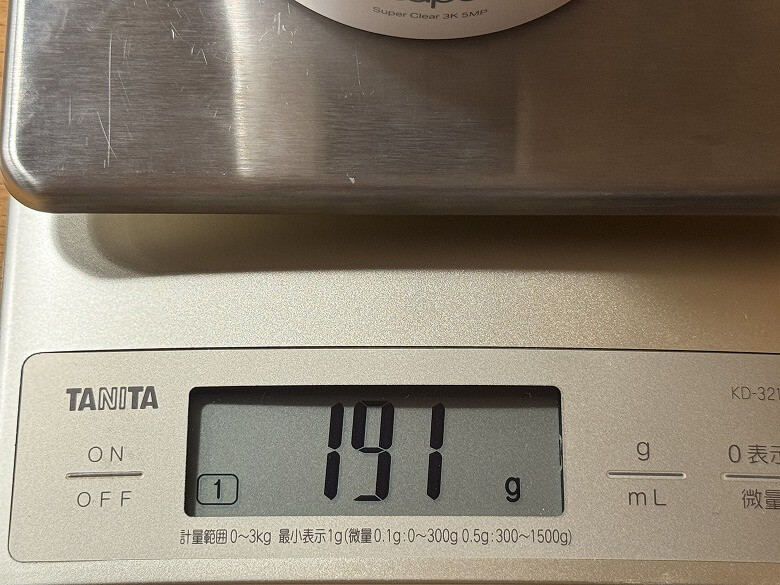 重さは191 gでした。